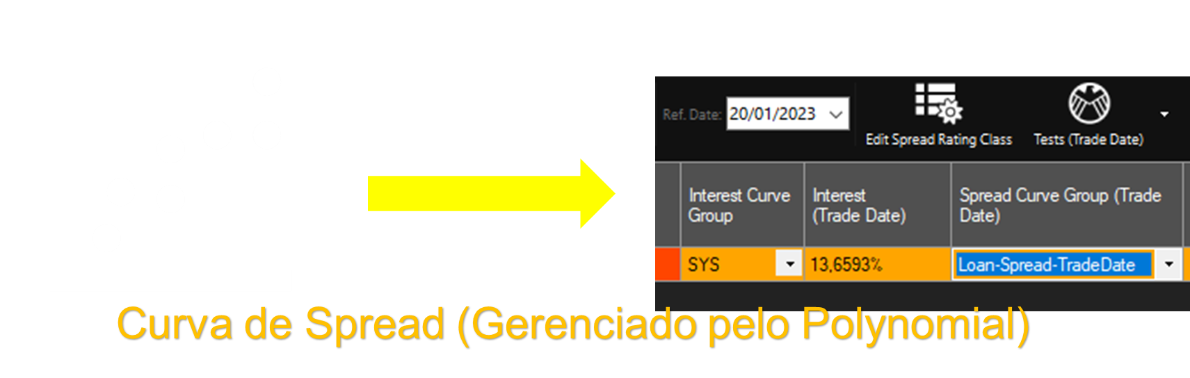 Na tela do Loan Bullet tem um botão nomeado como Edit Spread Rating Class que permite alterar o Spread Rating Value, valor esse que está relacionado com o Spread Raiting Class. Porém, a forma atual de edição pode levar a erros por parte do usuário. Dessa maneira, a fim de melhorar a usabilidade desta funcionalidade, uma nova tela está em desenvolvimento, sendo ela demonstrada a seguir.