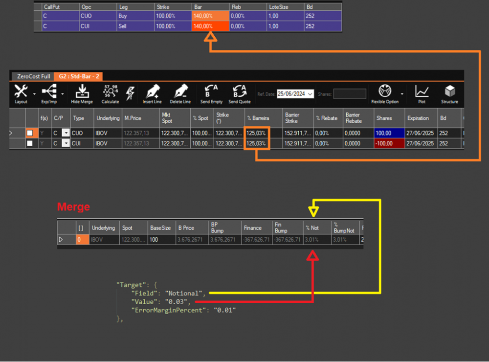 “OptionBarrier[0].Strike”: O sistema tentará encontrar o valor target modificando somente o Strike da operação barreira de index “OptionVanilla[1].Strike” O sistema tentará encontrar o valor target modificando somente o Strike da operação Vanilla de index 1.