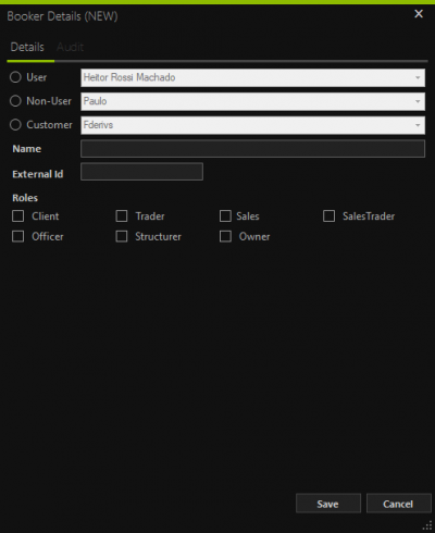 1. Selecione um dos campos: User, Non-User ou Customer.