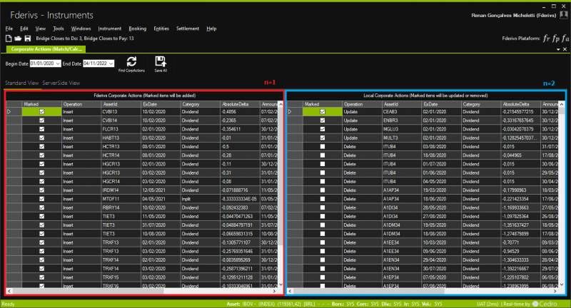 Sincronização de CorpActions
