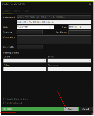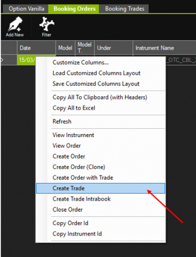 7. Na linha do Grid correspondente a Ordem, clique com o botão direito, e depois em “Create Trade”.