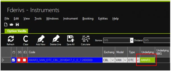 2. Mude o Underlying para “AMAR3”.
