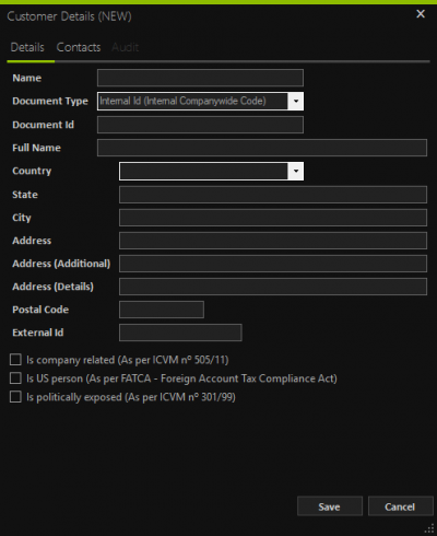 1. Preencha o campo Name e Document Id, que são obrigatórios para validação.