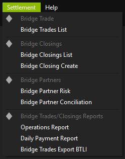 Mostrar código fonteRevisões anterioresLinks reversosVoltar ao topo Share via Share via... LinkedInAlterações recentesSend via e-MailPrintPermalink × Settlement Bridge Trades List Bridge Closings List Bridge Closing Create Bridge Partner risk Bridge Partiner Conciliation Operations Report Daily Payment Report Bridge Trades Export BTLI Menu principal - Instruments Última modificação: 2021/08/12 09:45por 114.119.158.58